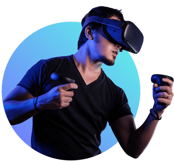 الواقع الافتراضي (VR) هو تجربة محاكاة يمكن أن تكون مشابهة للعالم الحقيقي أو مختلفة تمامًا عنه. تشمل تطبيقات VR الترفيه والتعليم والأعمال. هو تجربة محاكاة يمكن أن تكون مشابهة للعالم